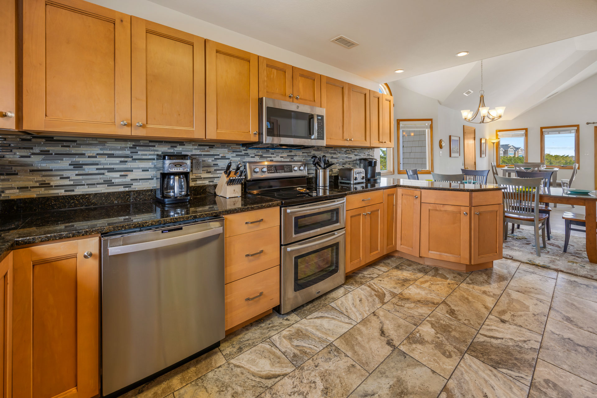 A cathedral ceiling amplifies the airy feeling of the upper-level great room, smartly laid out to bring everyone together for meals and many more memorable moments. A spacious kitchen, with granite countertops, a double oven, and pantry to store your groceries will delight any cook. Enjoy your meals around a six-seat dining table or a four-seat pub table. Gather with your family for a game or TV night with a Smart TV allowing you to stream your favorite shows. For those immersed in a good book, steal away to the loft area and knock out a few more chapters. Bookmark your spot and make your way to the deck to catch the incredible sunset that sinks into the sound each evening, the closing chapter of an amazing day.