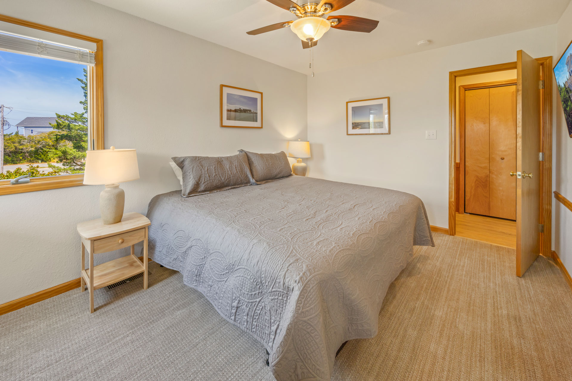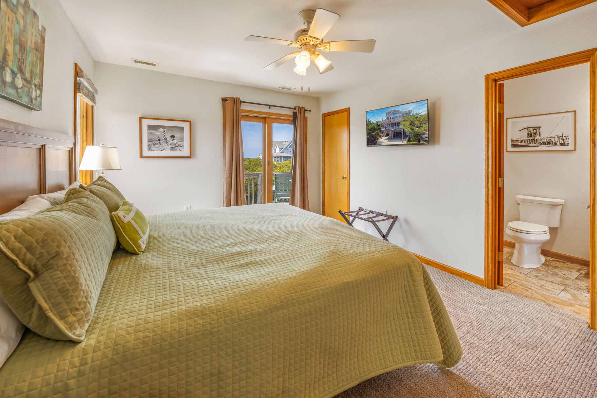 Bringing a boat? There’s room for it in the under-the-house parking area with plenty of space. Avid anglers will also love the outside shower and fish-cleaning station with water and lights, and the utility sink, refrigerator, and racks to store your fishing gear just inside on the ground level. An elevator with ground level and top level stops is a welcome convenience to unpack the groceries you’ve brought along for your stay. On the first level you’ll find four of the home’s bedrooms: a king master with an ensuite bath and walk-in closet; and a king bedroom, a queen bedroom and a room with two single beds and a queen sleeper sofa that share a hallway bath. The final bedroom, a king ensuite, is located on the second level. All of the bedrooms offer deck access for those views that will be sure to motivate your mornings and inspire your dreams at night.