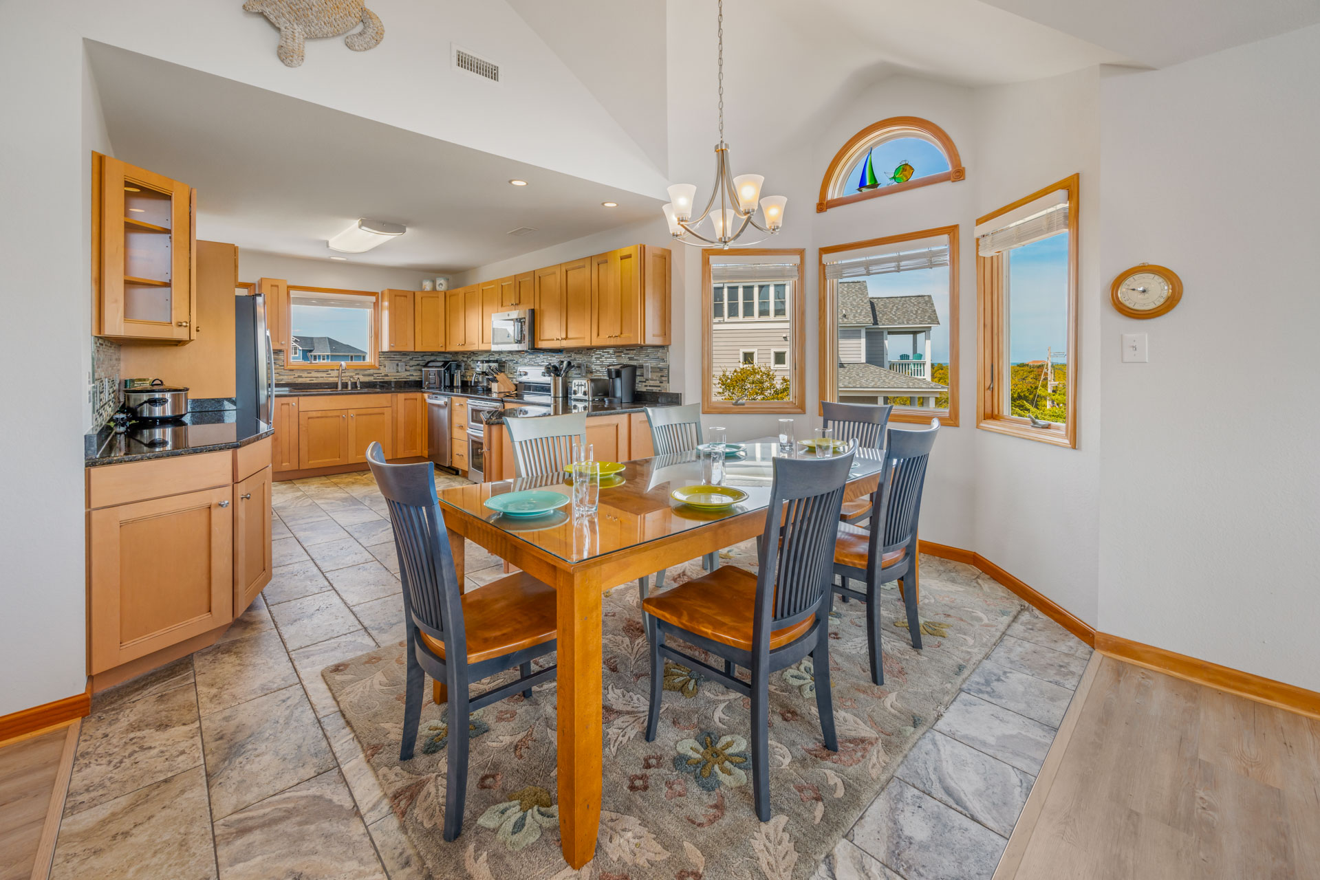 SOUNDSIDE Avon — Windlass Ct. — When it’s time to press pause on everyday life, escape to HATTERAS HIDEOUT, a peaceful five-bedroom/three-bathroom perched on a wooded lot in a quiet cul-de-sac. For those who dream of sinking their toes into the ocean sand, kiteboarding the gentle swells of Pamlico Sound or catching dinner on a morning fishing run, you can have it all in this centrally located Kinnakeet Shores home.